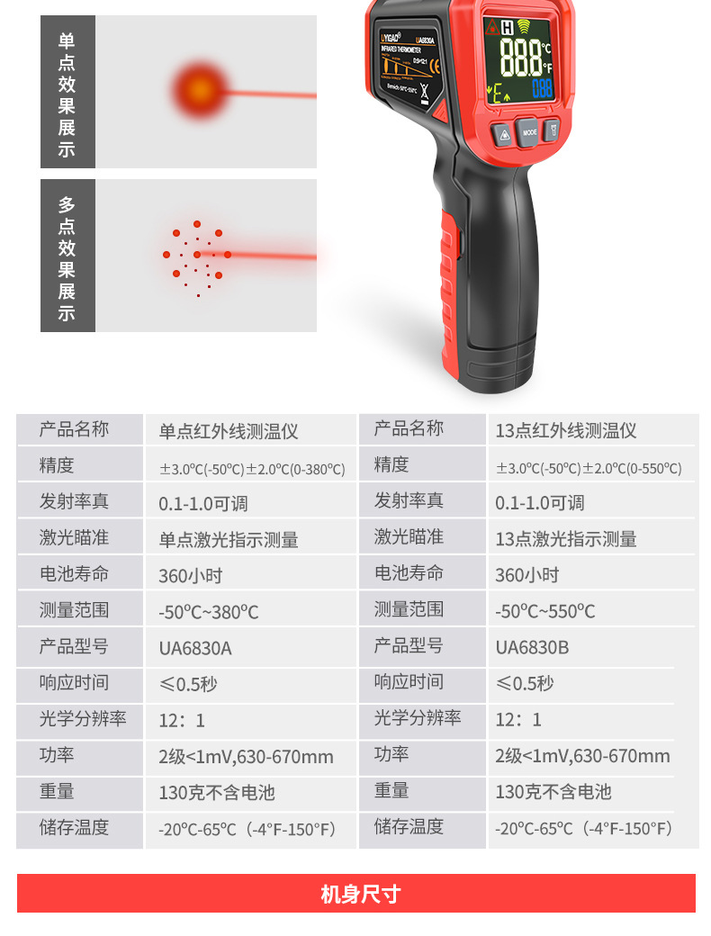 紅外測溫儀工業高精度紅外線溫度計電子測油溫手持測溫槍水溫UA6830A