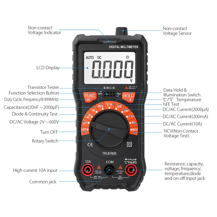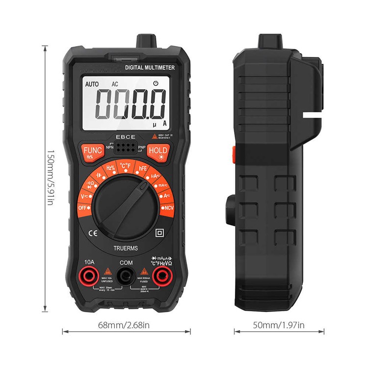 多功能: 具有數據保持的儀器,單位符號顯示,自動斷電,全面過載保護。