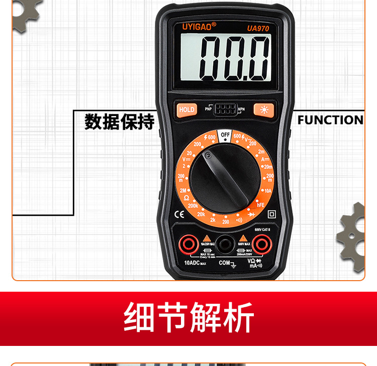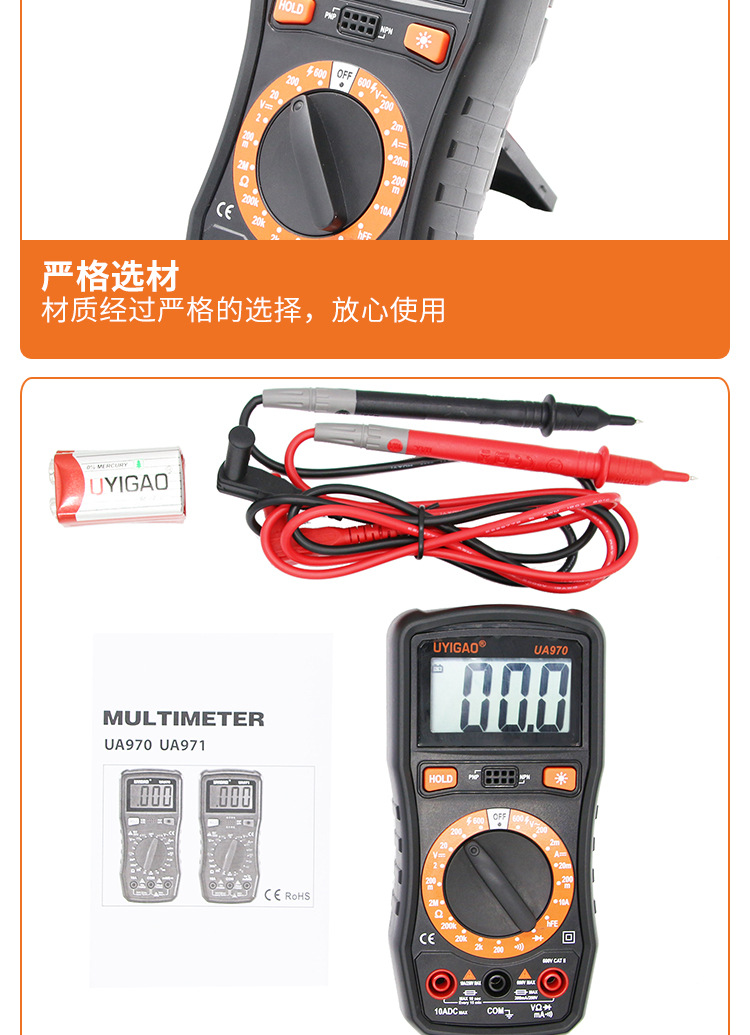 掌上型自動量程數字萬用表UA970 便攜式口袋表 工具箱配表