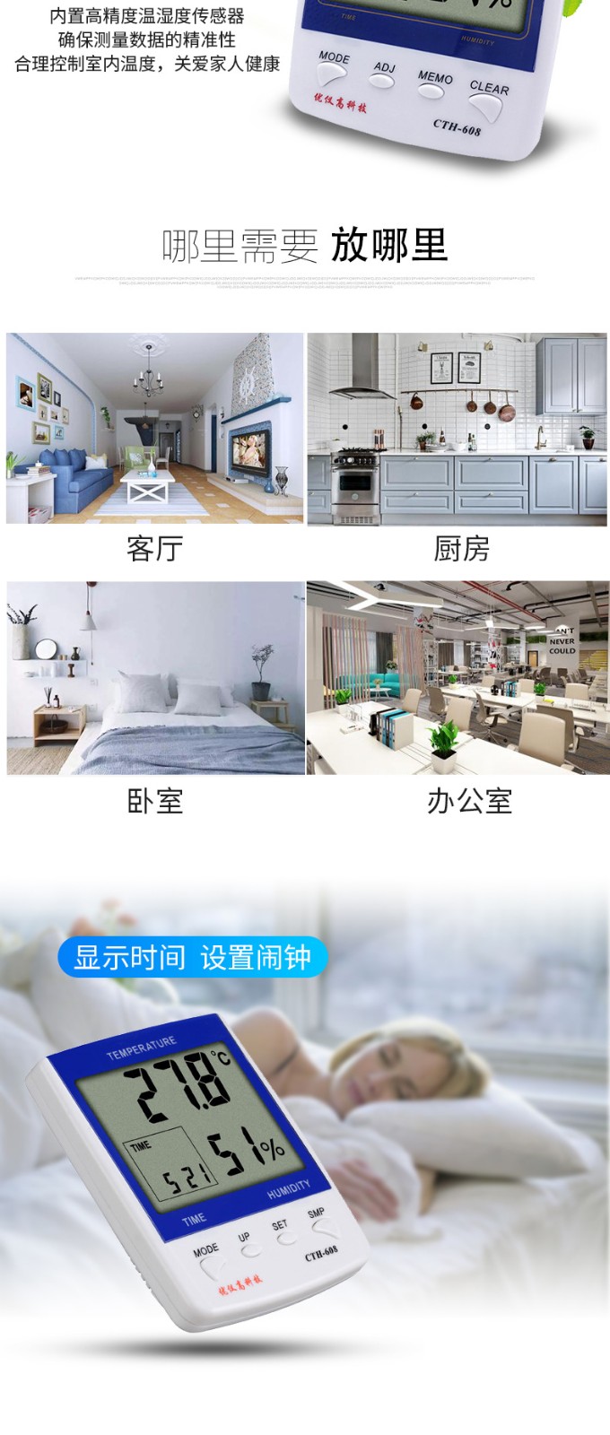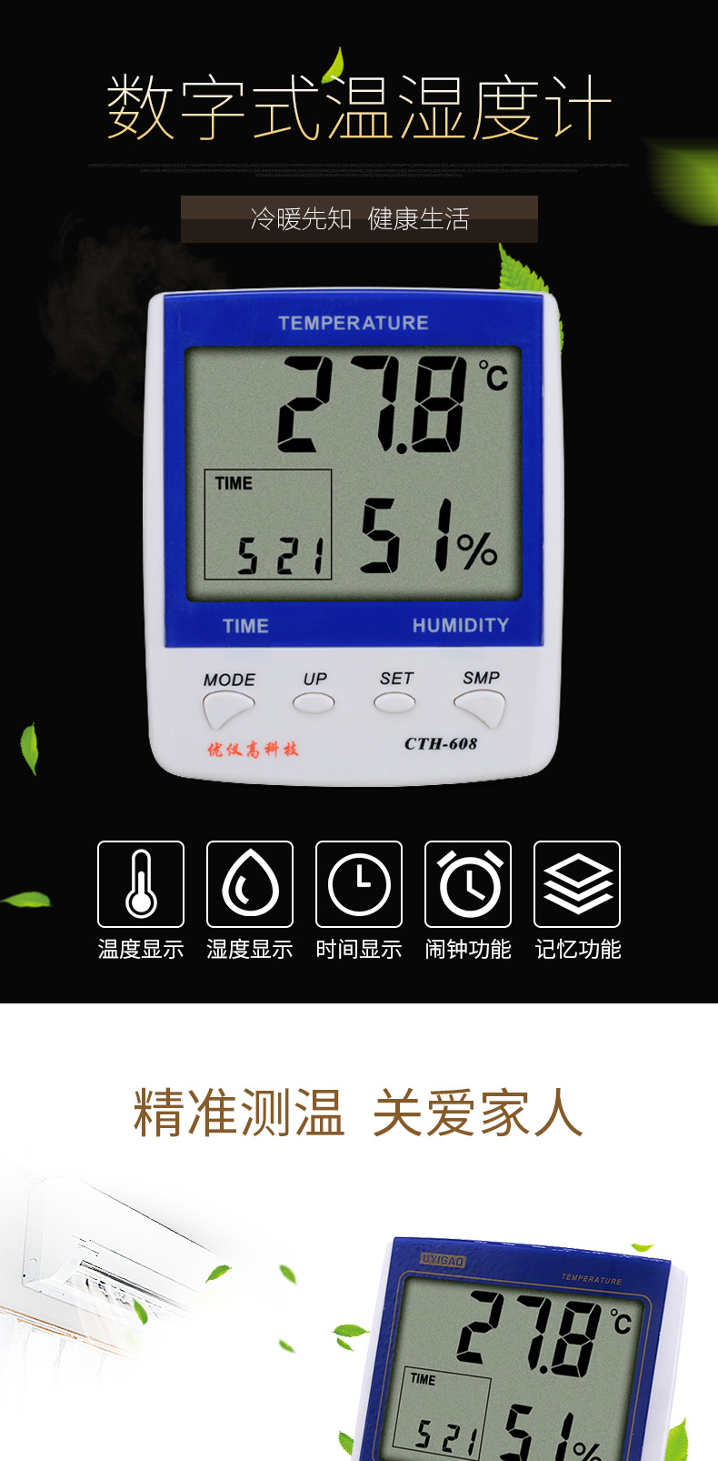 5、時鐘功能,最大值、最小值溫濕度儲存功能;